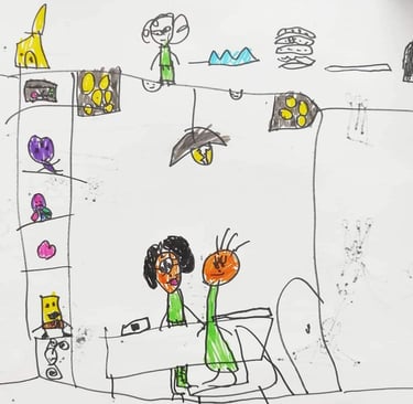 Labai mielas ir prasmingas 5 metų autistiškos mergaitės piešinys. Piešinyje aš ir mergaitė kabinete, o mama laukia koridoriuje. Mergaitei buvo tik dvi pamokos, tačiau kiek detalių pastebėta ir perkelta į piešinį! O pirmoji pažintis su mergaite buvo sudėtinga, su daug garso ir emocijų. Pamokos planas, aptarimas ir kiekvienos užduoties įsivertinimas, paskatinimas ir motyvavimas, nuolatinis tėvų konsultavimas ir palaikymas jau duoda pirmuosius rezultatus. Tikiu, kad kartu einame teisingu keliu!